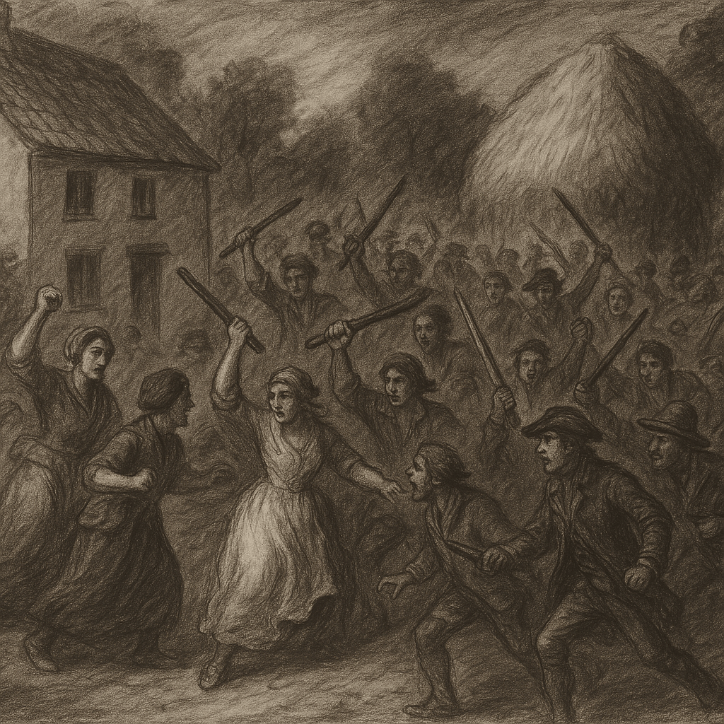 John Fox, along with his brother Jonathan and father Stephen, were assaulted in the process. His stack of hay was pulled down and some of it was taken away. George Gosling was also assaulted while attempting to keep the peace.