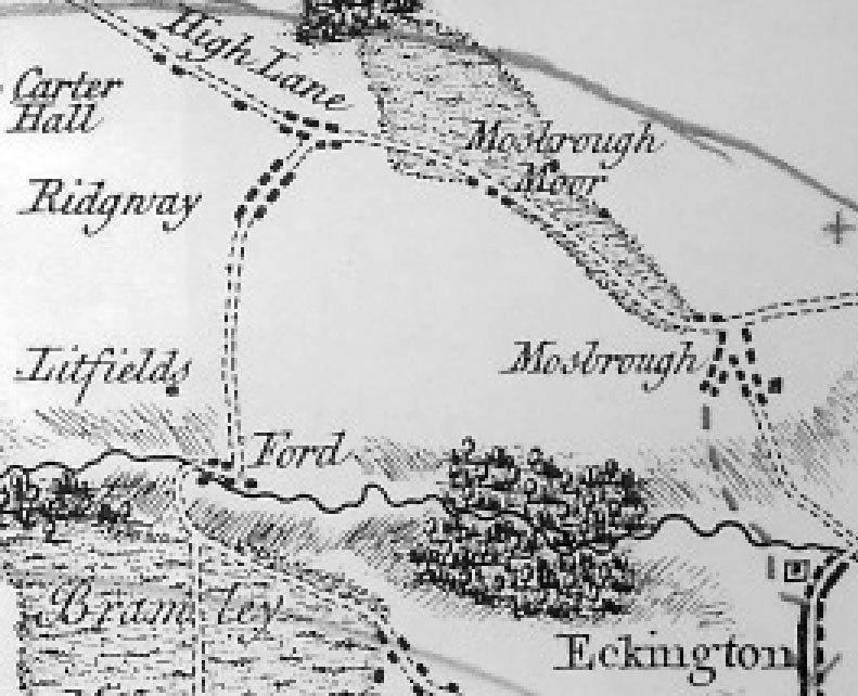 Burdett’s Map of Derbyshire (1791), one of the earliest complete maps of the county (see extract in Figure 1), depicts the route of the Bridle Stile from High Lane to Mosborough village, notably before the A6135 High Street/Mosborough Moor Turnpike Road was constructed. Records of the Eckington Manor Court in 1823 distinguish between the two routes, The Turnpike Road to the north and the ‘High Road’ (Bridle Stile) to the south.