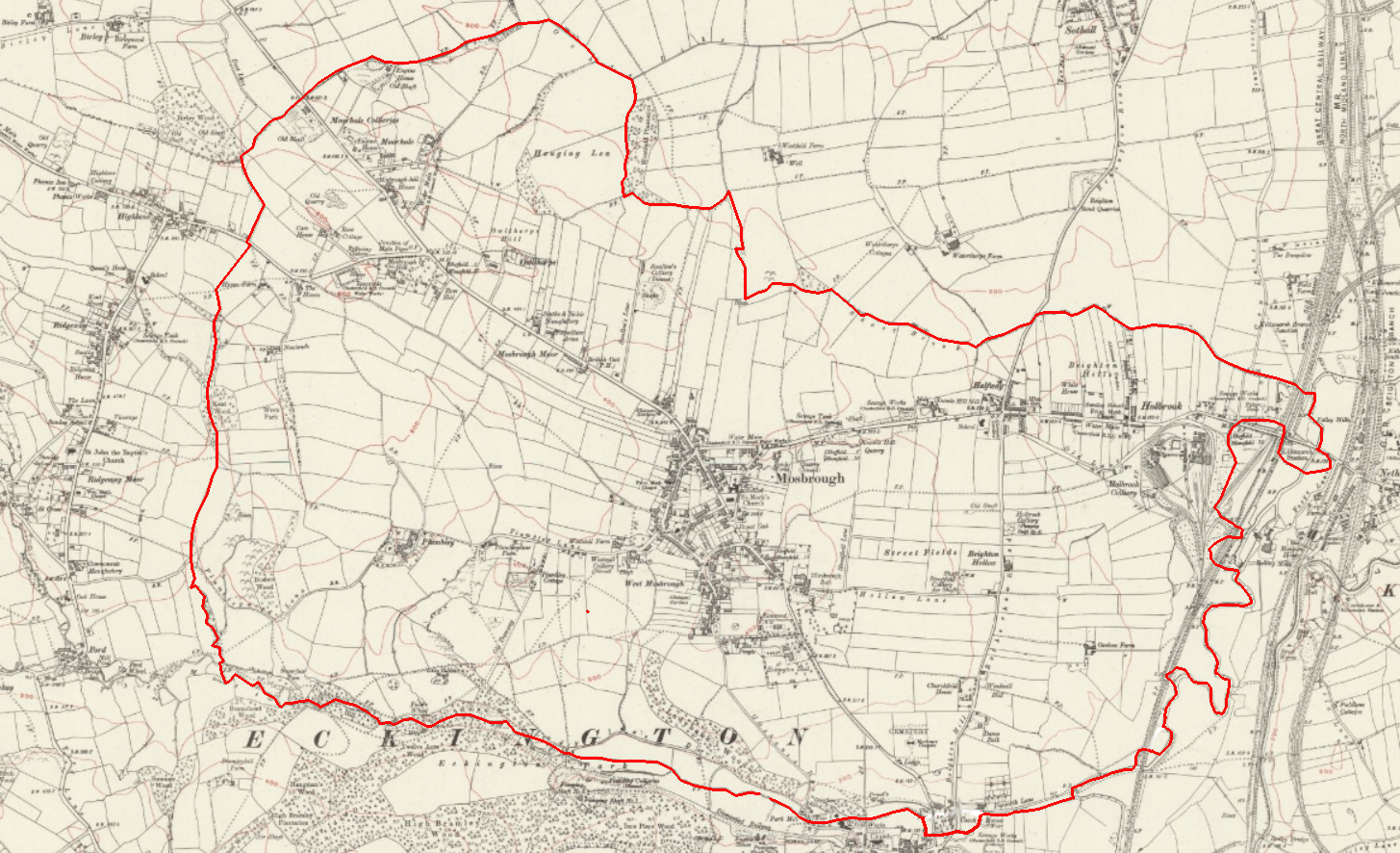 The township of Mosborough occupies some 2,200 acres immediately to the northeast of the parish of Eckington in Derbyshire.